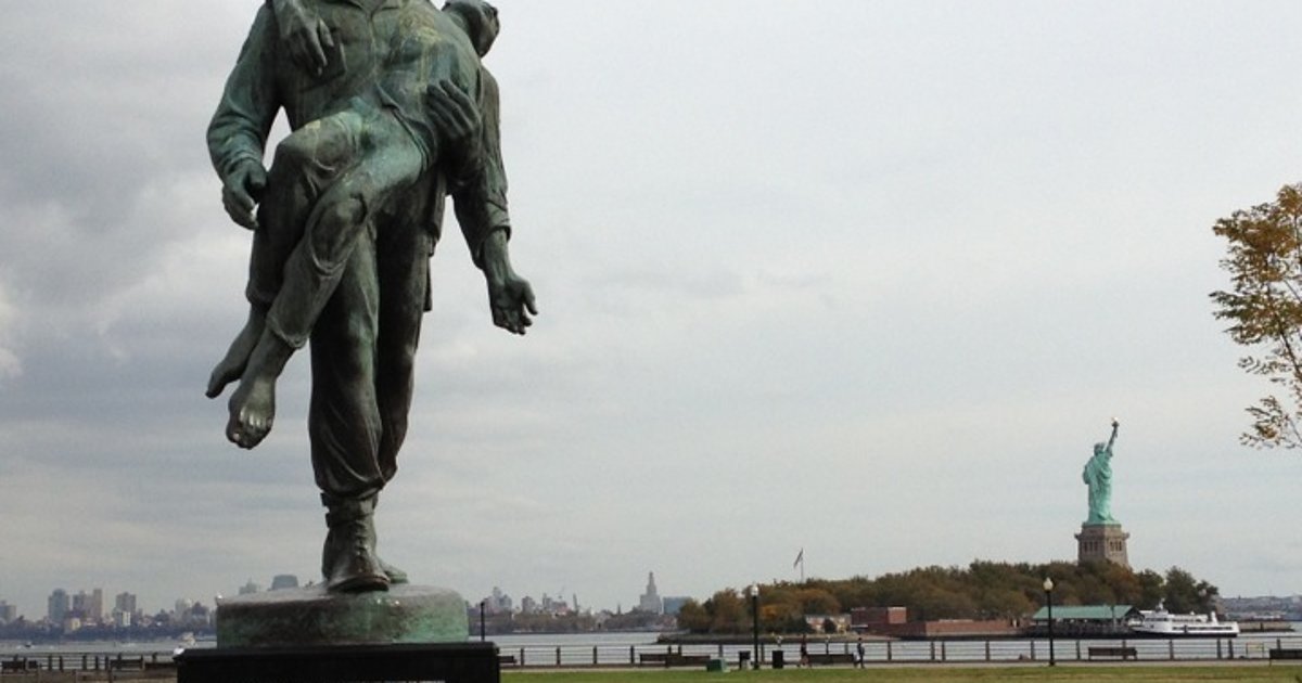 האנדרטה היא פסל ארד של חייל אמריקני, הנושא בזרועותיו ניצול של מחנה ריכוז נאצי. עיצובה מיועד להזכיר את חלקו של הצבא האמריקני בשחרור מחנות הריכוז הגרמניים ואת היות ארצות הברית מקום מפלט עבור רבים מניצולי השואה.